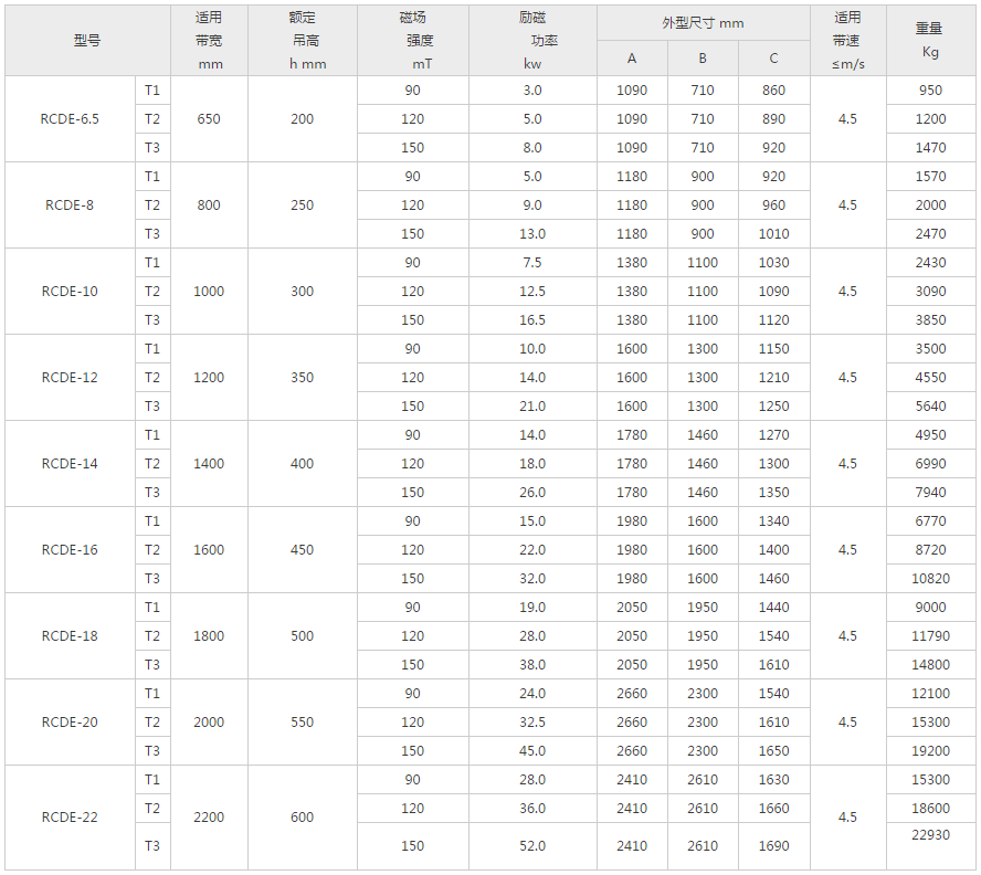 RCDE型油冷式电磁除铁器,内部采用先进的内外置式油循环散热管设计和内部励磁线圈独特绕制技术,全密封结构,具有磁力大、防尘、防雨、耐腐蚀、连续工作使用寿命长等特点。